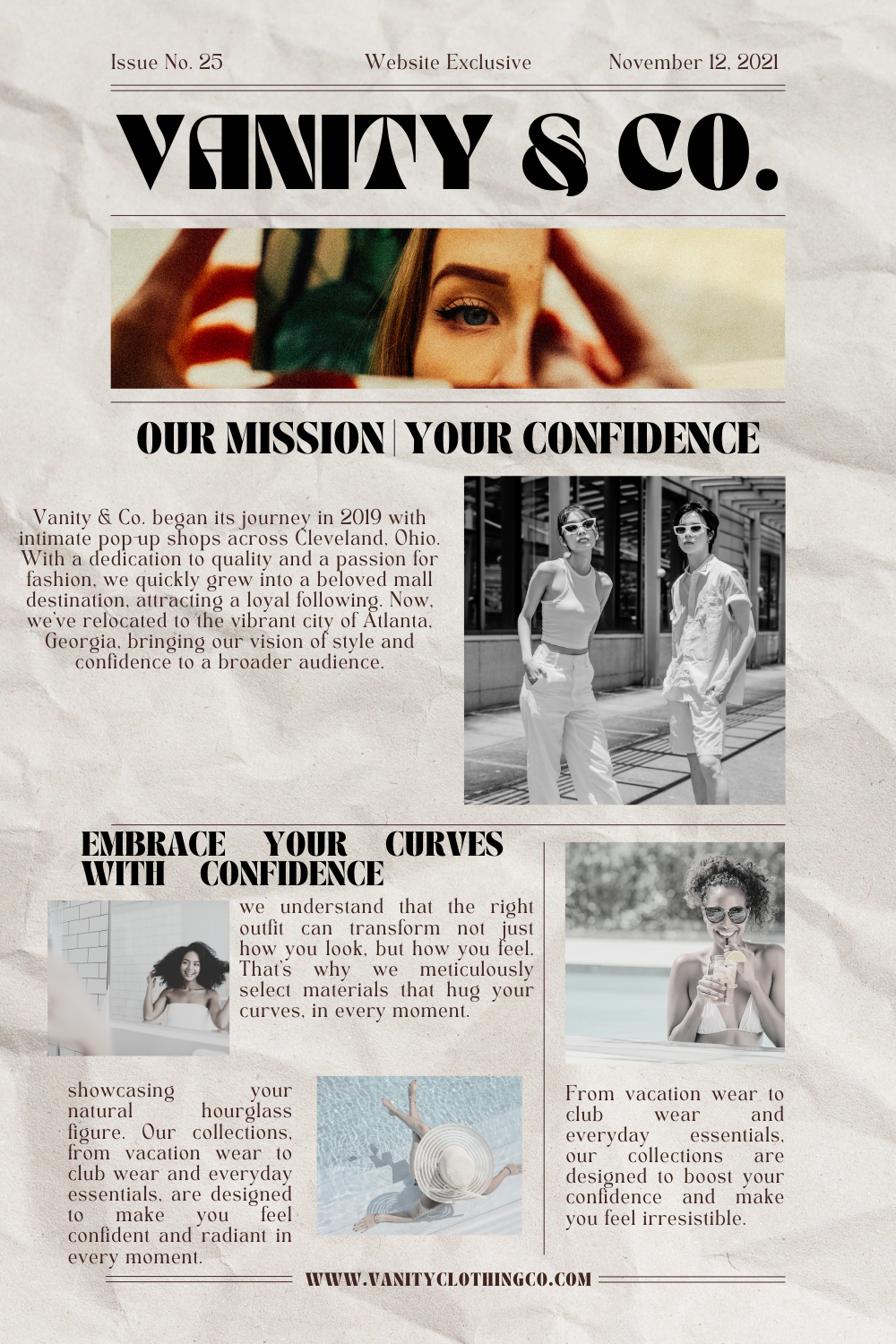 At Vanity & Co., we believe that everyone deserves to feel confident and beautiful. Our mission is to provide high-quality, luxurious materials that hug your curves and accentuate your natural beauty—without breaking the bank. Whether you’re dressing for a special occasion or an everyday moment, we invite you to slip into something irresistible with our carefully curated collections that blend style, comfort, and affordability.